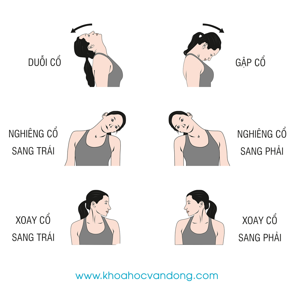 - Duỗi nhẹ nhàng bằng cách nhìn lên trên và đưa đầu về phía sau trong khi giữ vai và lưng cố định,