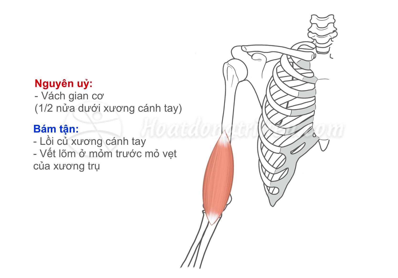 Đôi khi bị chia thành 2 phần và có thể hợp nhất với các sợi cơ của cơ nhị đầu, cơ quạ hoặc cơ sấp tròn.