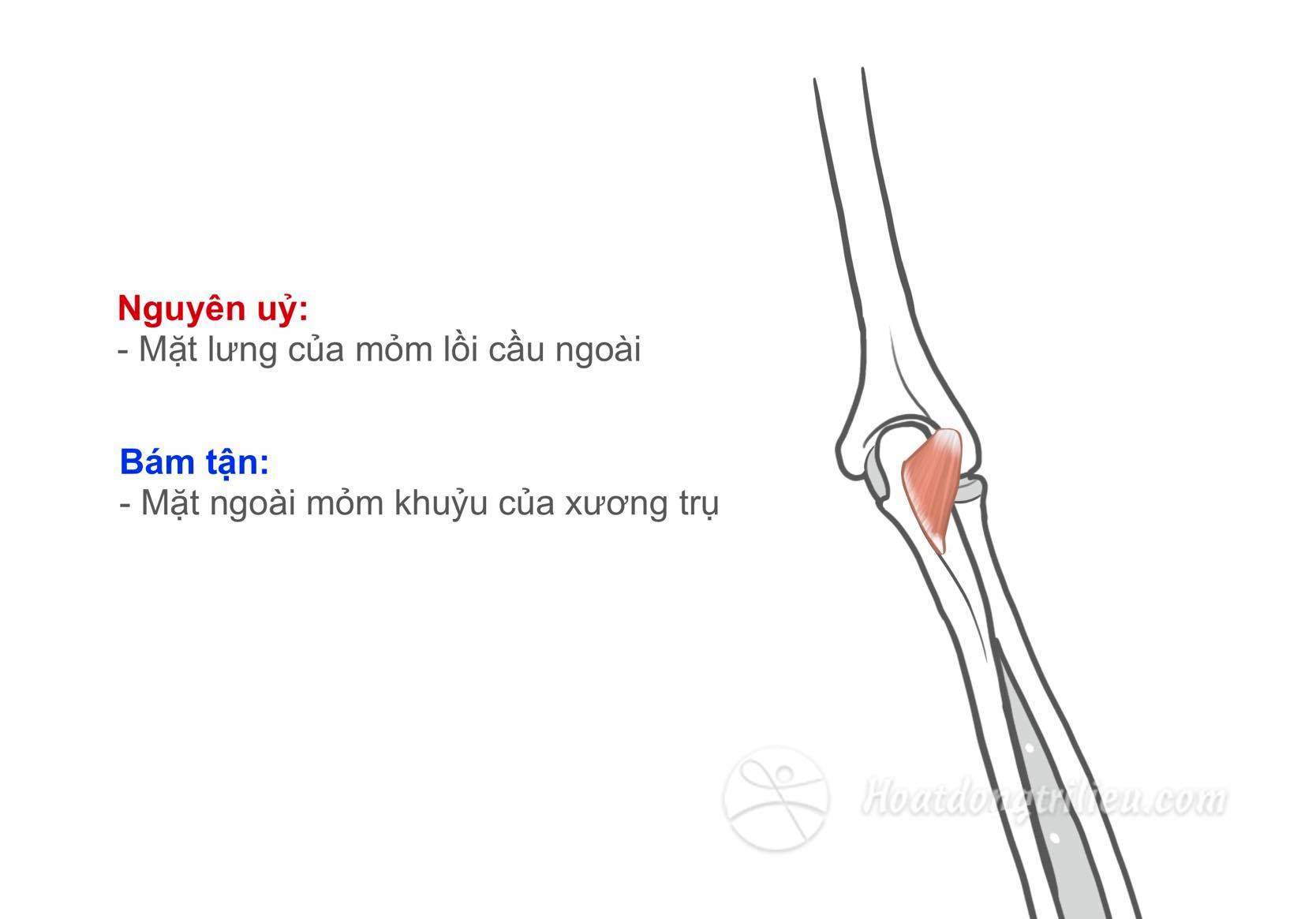 Có vai trò phụ trong chấn thương khớp khuỷu (ví dụ: trật khớp, gãy mỏm khuỷu).