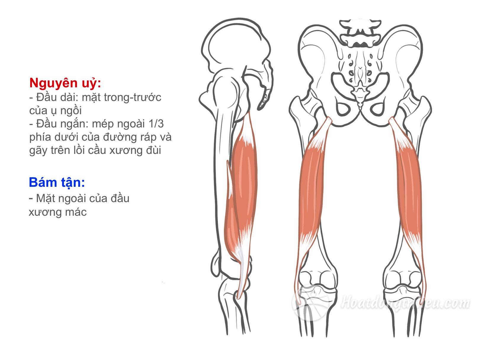 Tổn thương thần kinh tọa: ảnh hưởng chi phối cơ nhị đầu đùi (tùy nhánh).