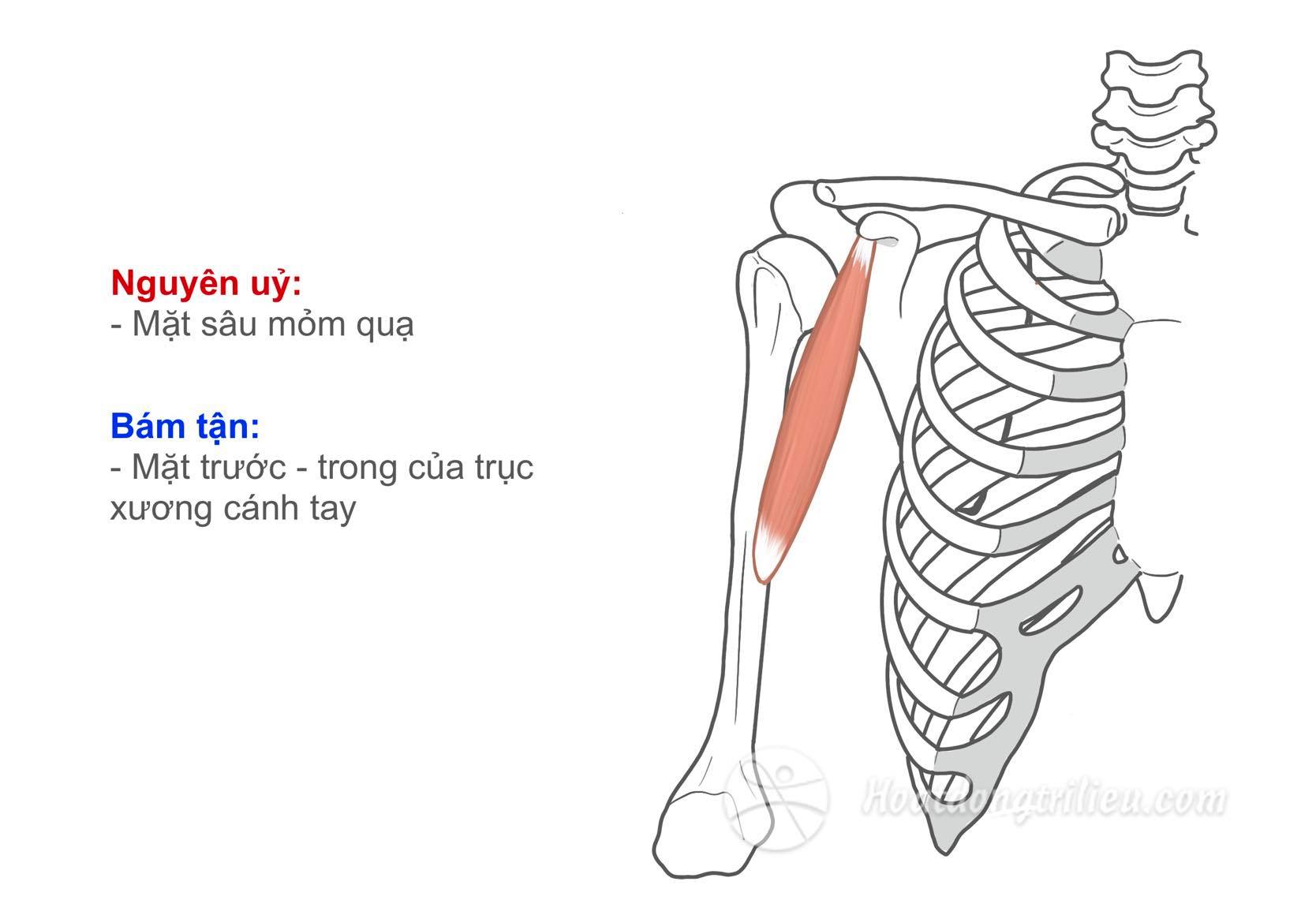 Căng cứng, vôi hóa cơ quạ: Việc lạm dụng cơ quạ có thể dẫn đến cứng cơ, các nguyên nhân phổ biến thường do nâng tạ quá sức hoặc mang vác vật nặng. Triệu chứng điển hình là đau ở cánh tay và vai, lan xuống mu bàn tay.