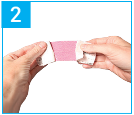 Động tác xé:Xé mặt giấy phía sau tại tâm băng, sau đó từ từ kéo ra 1 khoảng dài 2.5 cm |